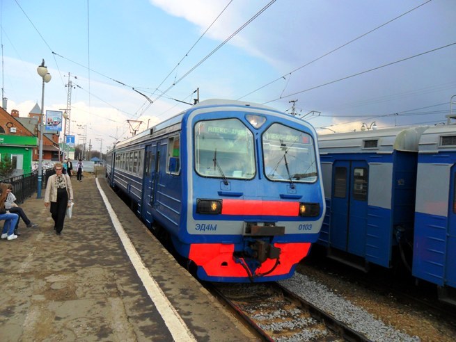 Der Rückzug, aus dem mir die folgenden Fotos gelungen sind, fährt gerade recht früh in Sergiev Posad ein. Es ist der Elektrotriebwagen ЭДМ4 0103, der gerade aus Alexandrov kommt.