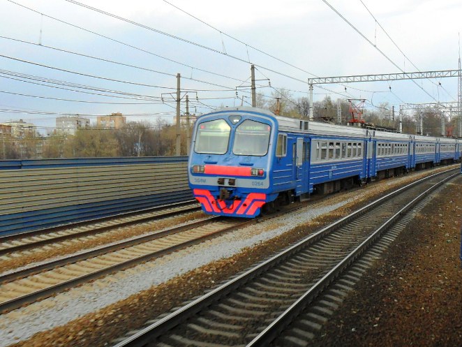 Das nächste Fotoobjekt wurde dann überholt: der ЭР2 1316 - in der Nähe der Station Malinovskaja - hier von hinten mit ein paar Schwarzfahrern, was hierzulande aber überhaupt keinen stört (sofern derjenige nicht bei der Polizei oder der Bahn arbeitet).