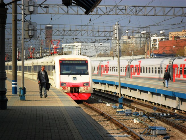 ...den Expresszug von Moskau nach Puschkin. ЭМ4 013 lauert schon auf Einfahrt.