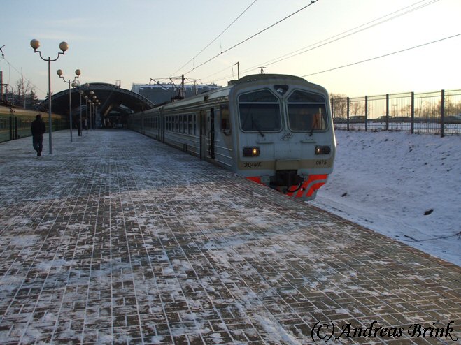 Und auf der gegenüberliegenden Seite steht abfahrbereit der Express in die Gegenrichtung in Form von ЭД4МК 0075.