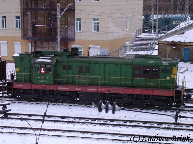 Die Rangierlok ЧМЭ3 5073 rangiert in Pererwa am 30.12.2008.