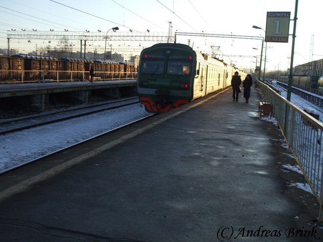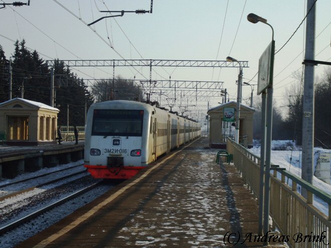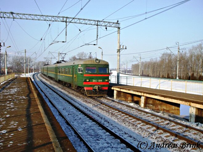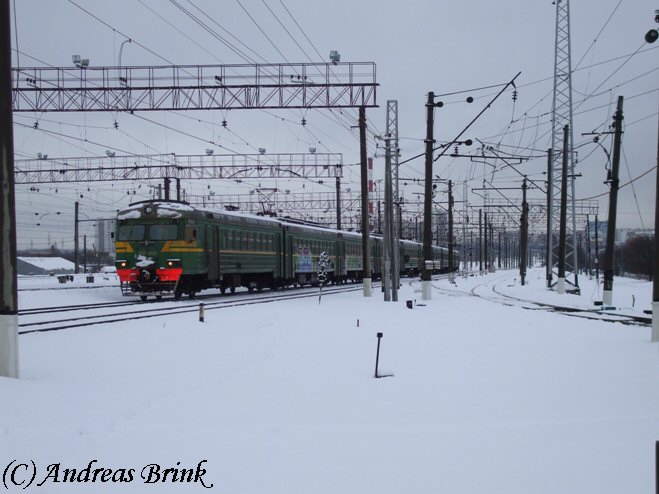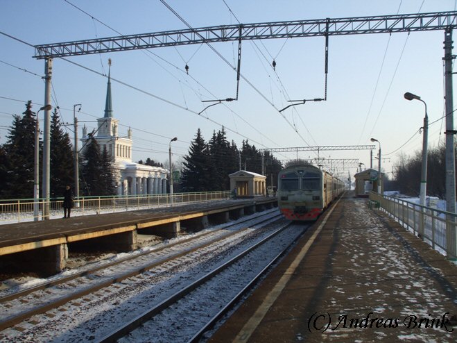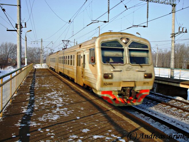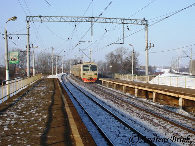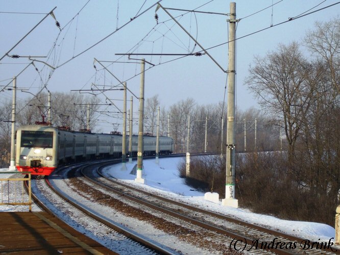 Am Nachmittag des 03.02.2009 macht sich gerade die ЭД4M 0182 als Zug 6367 auf den Weg nach Tschochov, hier aufgenommen in der Station Pererwa.