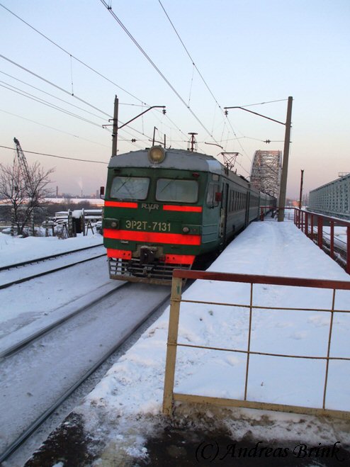 Am 05.02.2009 ist der Triebzug ЭР2Т 7131 als Zug-Nummer 6704/6419 von Krassnoje Stroitel nach Svenigorod eingesetzt und fährt gerade in Moskvoretschje ab.