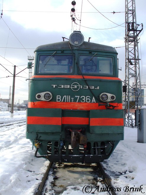Die Vladimir Lenin VL11-8- 736A (ВЛ11-8-736А) steht im Depot Moskau-Krassnij Baltijez.