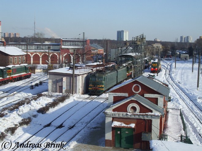 ЧМЭ3-656 ist wegen der Finanzkrise gerade arbeitslos geworden und wartet im Depot Moskau-Krassnij Baltijez auf bessere Zeiten...