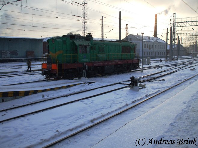 Im Kursker Bahnhof rangiert am 31.01.2009 eine ЧМЭ3.