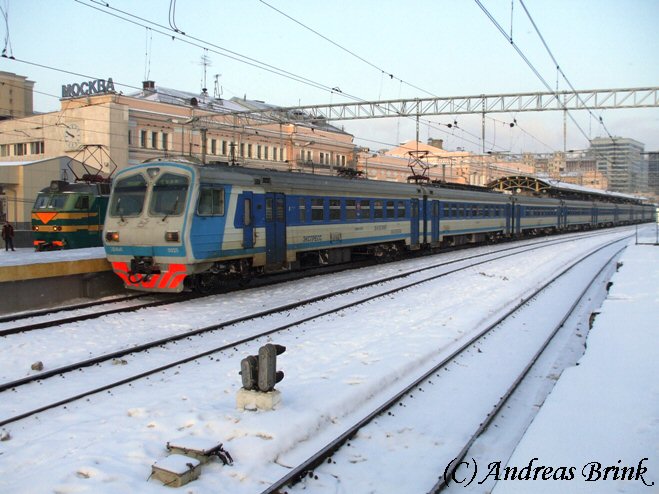Winter in Moskau und ЭД2Т 0010 wartet auf Abfahrt nach Moskau-Kalantschovskaja...