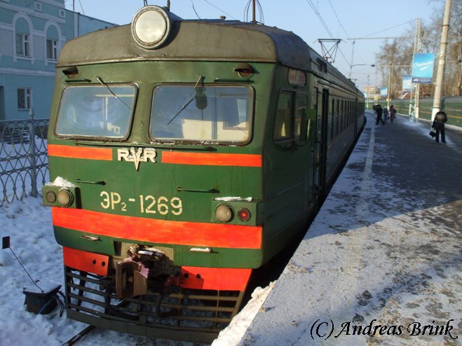 ЭР2 1269 hat am 31.01.2009 die Aufgabe, den Zug 6311 von Moskau nach Bolokolamsk zu fahren - hier in der Rigaer Station in Moskau.