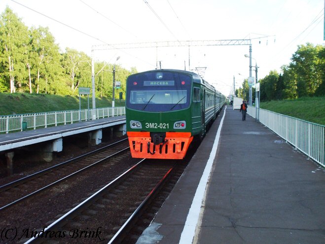 Teil II der Rückfahrt erfolgte mit ЭМ2-019 als Zug 6994 von Michnevo nach Moskau - hier bei einem Halt in Barybino.