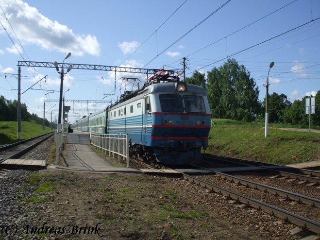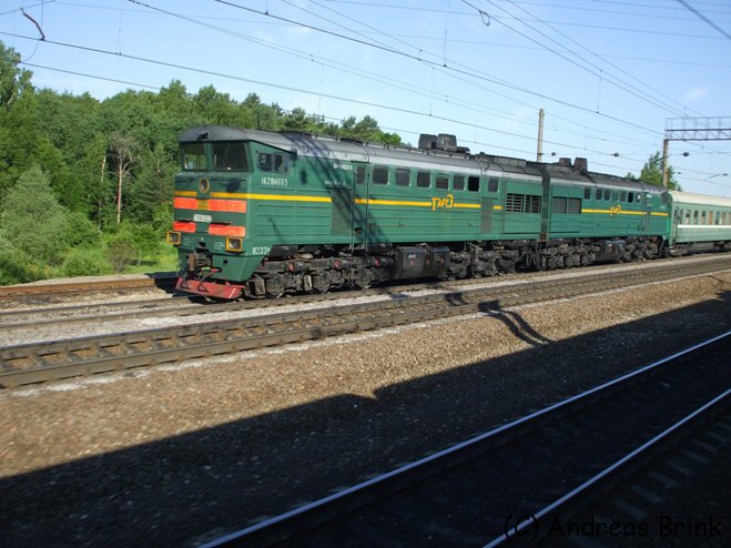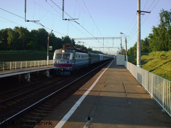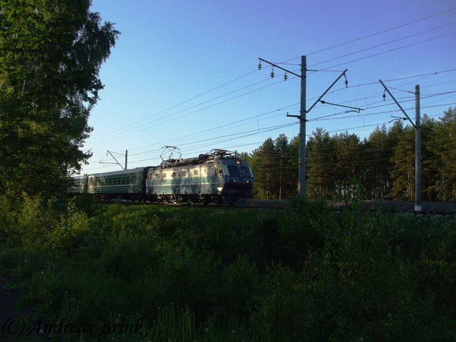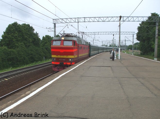 Auf der Heimfahrt von der Datscha nach Moskau haben wir noch einen kurzen Zwischenstopp in Bulatnikovo eingelegt, wo dann einige interessante Züge vorbeikamen. So z. B. der Zug von Adler nach Murmansk mit der Zuglok ЧС2-Т-915, ...