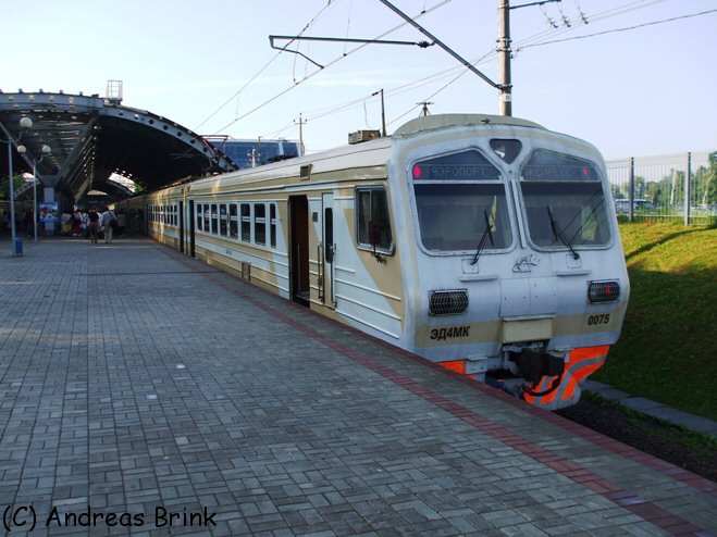 ЭД4МК 0075 ist gerade als Express-Zug 7203 am Flughaven Domodedovo angekommen und wird gleich wieder zurück zum Paveljetzker Bahnhof nach Moskau fahren.