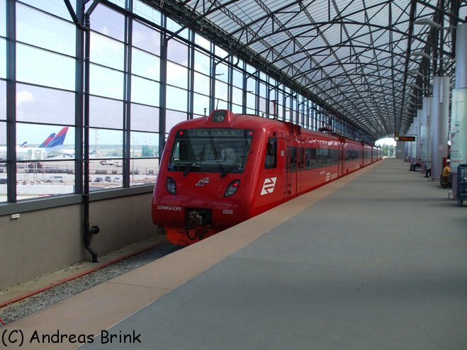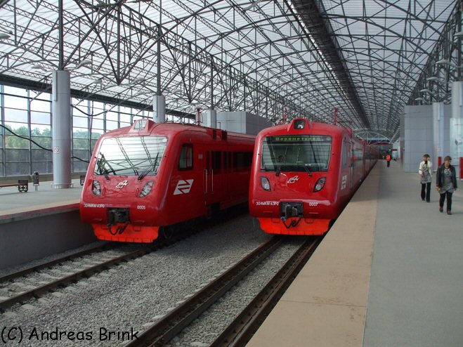 ... der ЭМ2-023 vom Flughafen Domodedovo zum Moskauer Paveljetzker Bahnhof, ...
