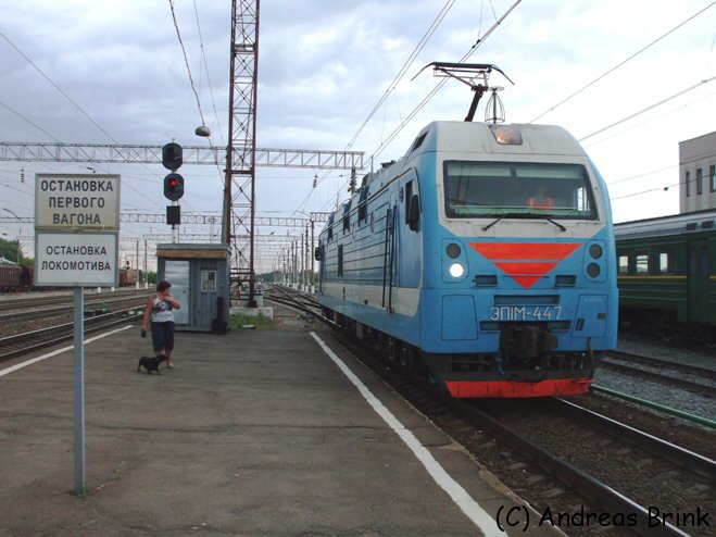 Hier rangiert gerade die ЭПIМ-447 vor einen Zug in Usunova.