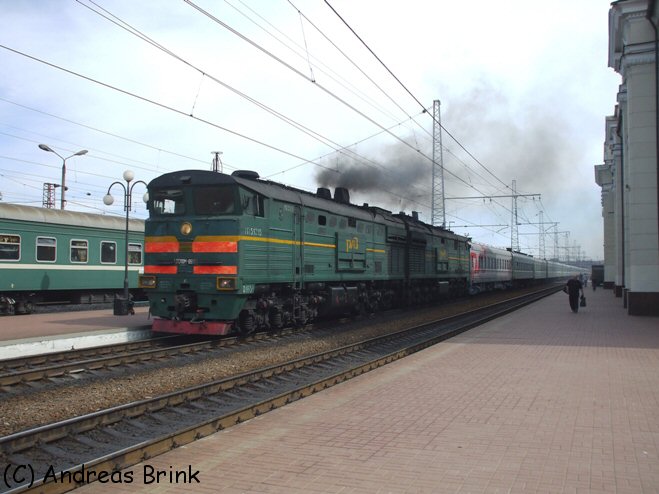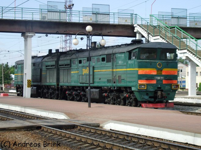 ... was 2ТЭ10М-2173 schon hinter sich hat. Sie hat gerade vom Zug Ejsk-Moskau gekuppelt.