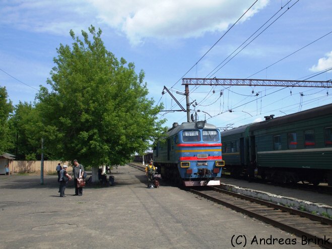 ...und später darf ich mit Genehmigung des Zugpersonals in Kaljasin ein wenig um die Lokomotive drumzuhüpfen.