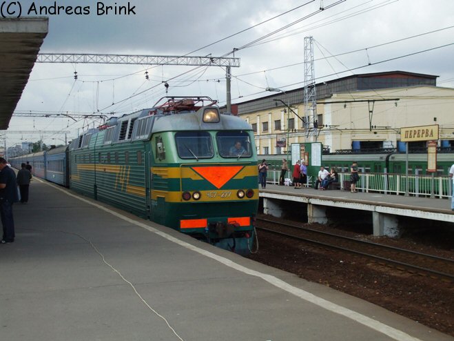 ЧС7 277 fährt mit einem Zug durch Pererwa in Richtung Moskau am 29.06.2009