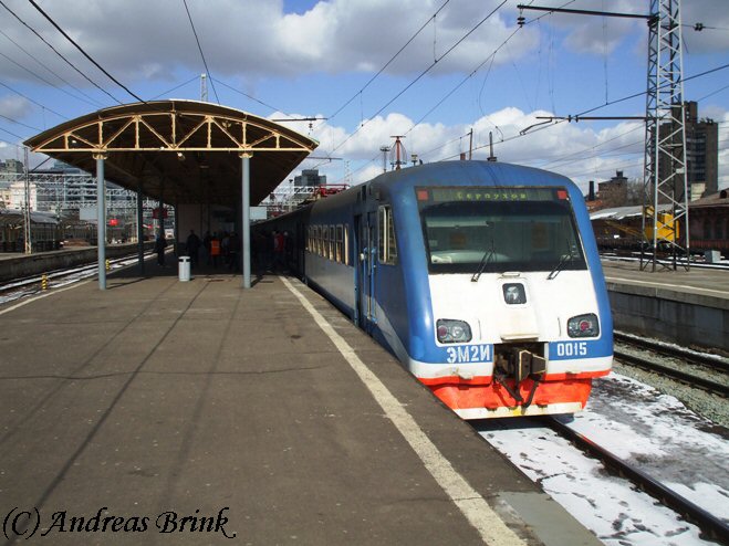 ...dort kam dann auch gerade der ЭМ2И 0015 als Express-Zug aus Serpuchov eingefahren...