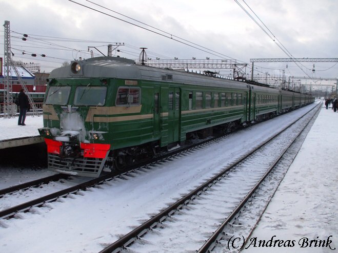 Der Elektrotriebwagen ЭР2-К-1116 fährt am Nachmittag des 18.11.2008 den Flughafenexpress vom Kiewer Bahnhof zum Flughafen Vnukovo.
