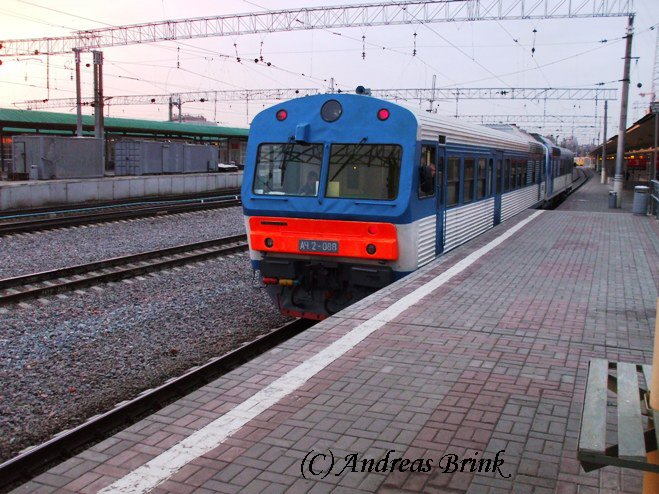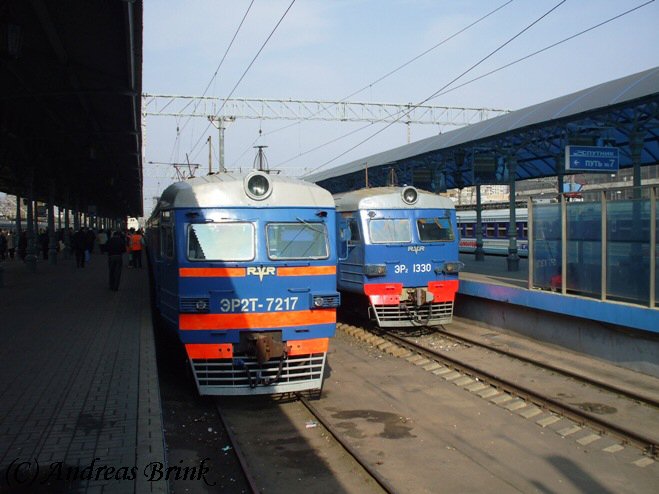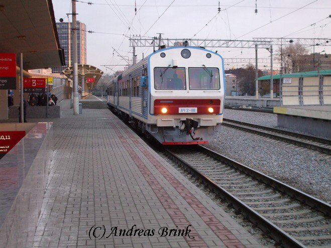 АЧ2-088 steht mit АЧ2-118 kurz vor der Abfahrt von Moskau nach Kubnika als Zug 6794 im Kursker Bahnhof bereit. Interessant ist, dass bei beiden Triebwagen der Motor nicht Unterflur angeordnet ist.