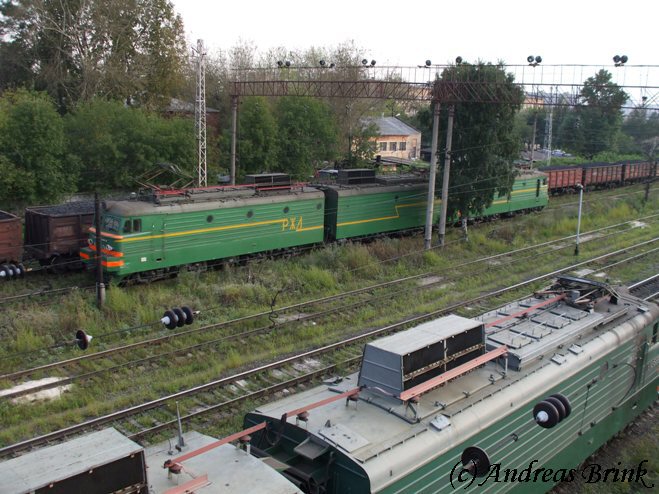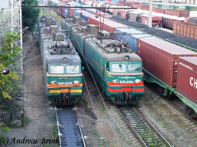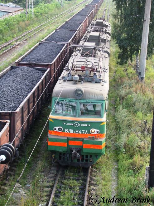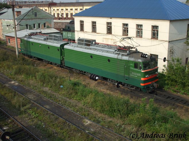 Und hier eine etwas kleinere Variante, die ВЛ10 ч 995. Auch sie zieht Güterzüge, deren Ende oft selbst von der Brücke aus nicht eindeutig auszumachen ist.