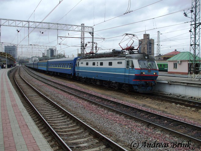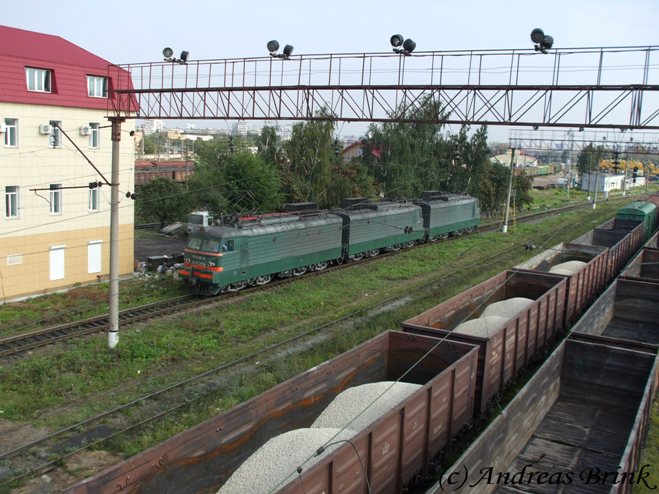 Und ebenso die ЧС2К-878. Auch hier ist mir nichts Näheres bekannt. Imposant ist dennoch, mit wie vielen Waggons diese sechsachsigen Loks von dannen ziehen. 19 Waggons sind keine Seltenheit.