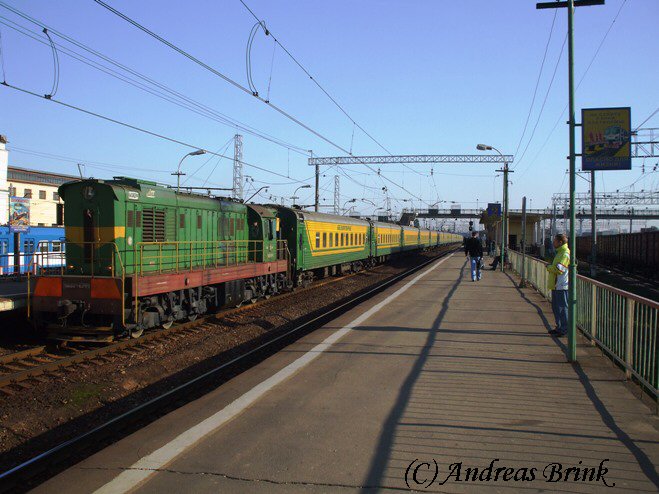 Die ЧМЭ3-6244 fährt gerade mit einem Reisezug vom Kursker Bahnhof durch die Elektritschka-Station Pererwa. Das Ziel des Zuges ist mir bislang noch nicht bekannt - nur dass er regelmäßig verkehrt.