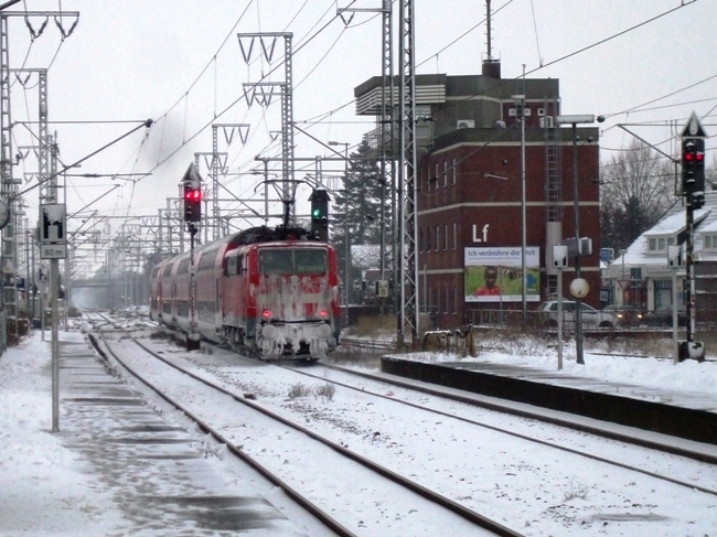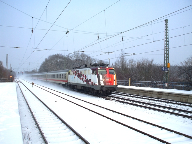 Am 25.01.2010 kommt 110 325-8 mit dem IC 334 durch Münsters Norden gerauscht.