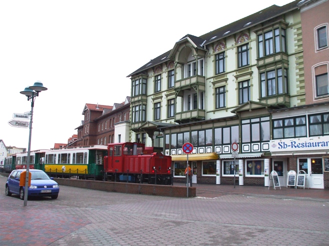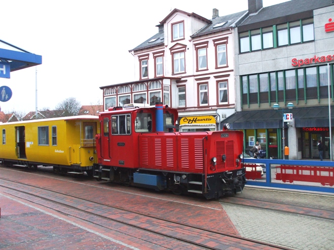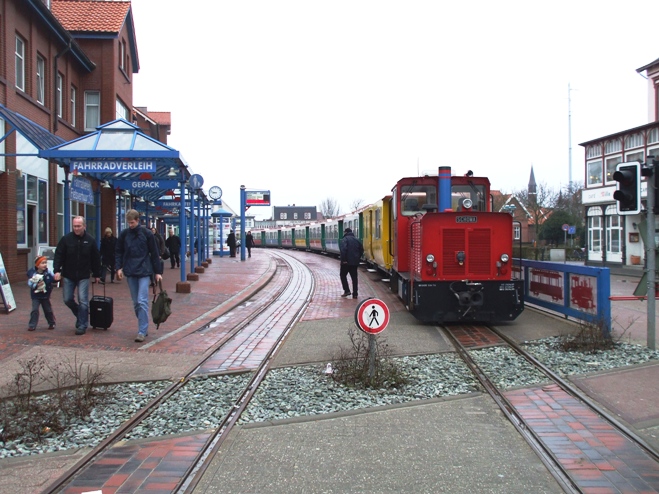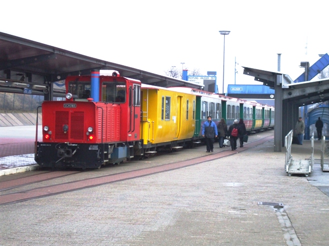 Die Lok "Aurich" in Borkum-Reede am 20.03.2010 kurz vor der Abfahrt in den Ort Borkum. Es führt die Lok "Berlin".