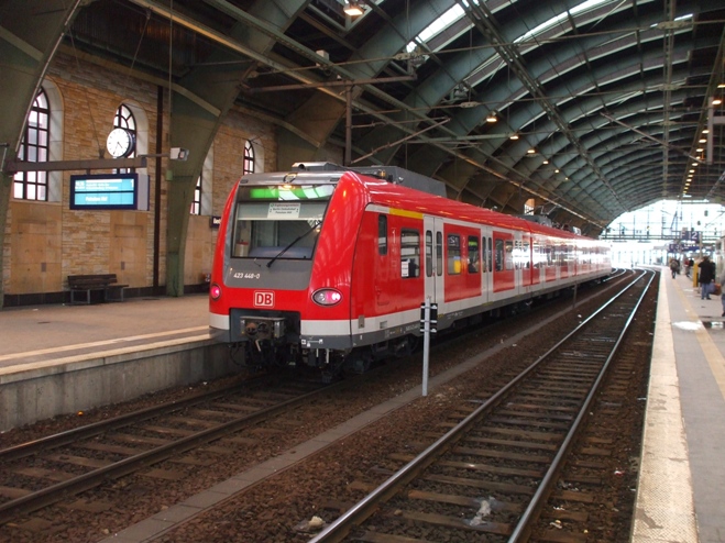 423 448-0 fährt am 21.02.2010 als Ersatzzug für die Berliner S-Bahn als RB von Berlin-Ostbahnhof nach Potsdam Hbf, hier an ersterer Station wartend.
