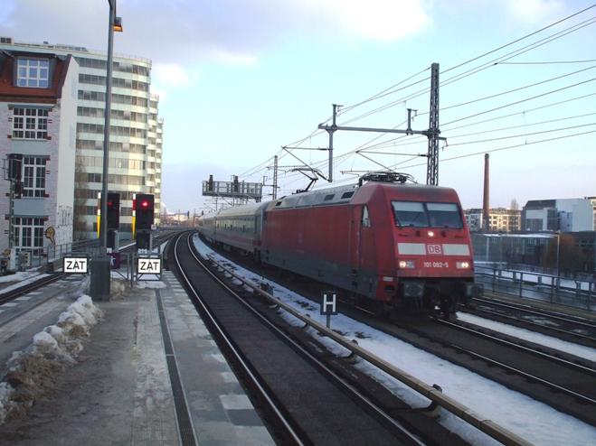 Kurz zuvor kam 101 092-5 mit IC 142 von Berlin-Ostbahnhof. - Schiphol (NL) an der Station Berlin-Jannowitzbrücke vorbeigefahren. (21.02.2010)