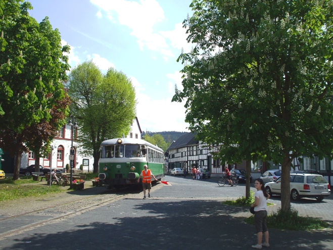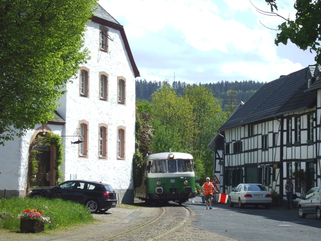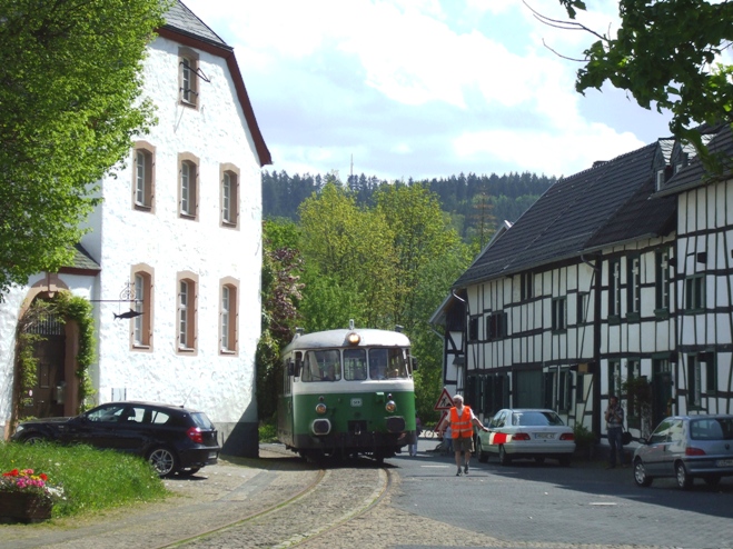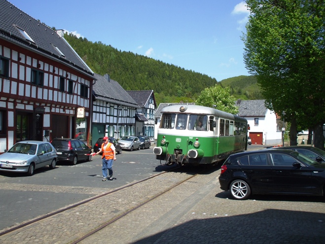 Am Nachmittag wurde der Triebwagen im Ortskern von Olef wieder aufgenommen, kurz nach einer Erfrischung im Bach Olef.