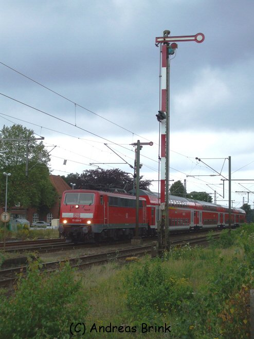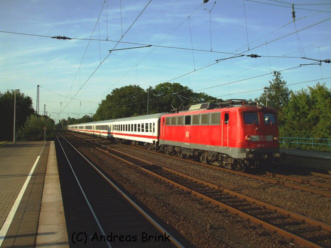 Aufgrund des Ausfalls einer 101 wurde der IC 2330 und die Rückleistung, der IC 430 mit einer alten Kasten-110er bespannt. Hier ist die alte Karre schon auf der Rückfahrt von Norddeich - allerdings fast im Plan! Schon erstaunlich, was altes Eisen noch leisten kann...