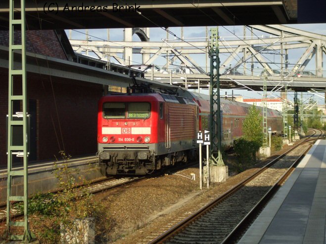 Mit einem RegionalExpress nach Schwedt (Oder) verlässt 114 030-0 den Berliner Bahnhof Gesundbrunnen am 12.09.2009.