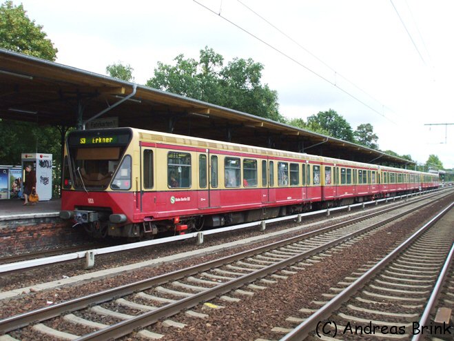 Am 13.09.2009 fährt die S3 als 480 023-1 von Berlin-Ostbahnhof nach Erkner - hier bei einem Halt in Berlin-Karlshorst.