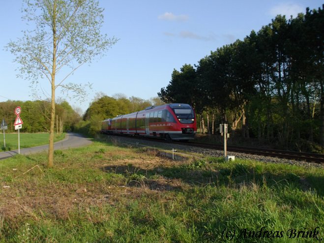Auch der Regelverkehr lief an diesem Tage auf der Strecke - hier einer der üblichen VT 643 (in diesem Fall 643 556-8) als RB 39317 (Coesfeld - Münster (Westf.) Hbf am Hp Lutum.