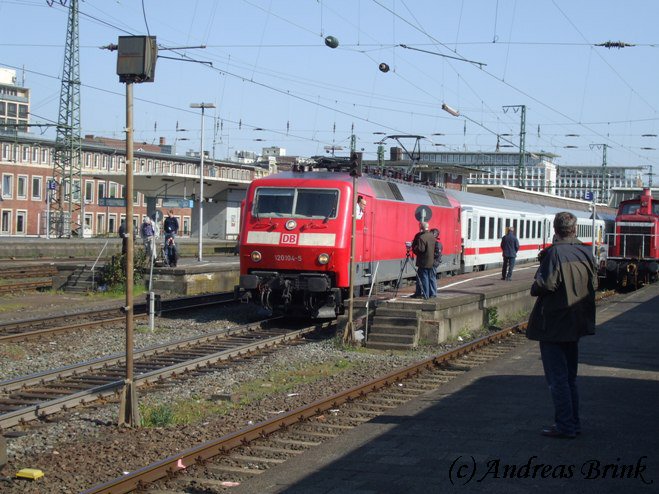 ..., aber auch 120 104-5 vor dem IC 2025 (Hamburg-Altona - Frankfurt (Main) Hbf). Es zeigt sich schon ein gewisser Fotografenauflauf, der üblicherweise auf etwas Besonderes hindeutet!