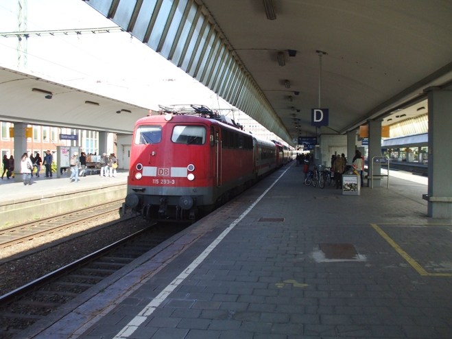 Wo ich im letzten Jahr mit aufgehört hatte, fange ich wieder an: Außerplanmäßig wurde der IC 2332 von Emden-Außenhafen nach Köln Hbf am 23.08.2009 mit der 115 114-1 bespannt. (Münster-Zentrum Nord)