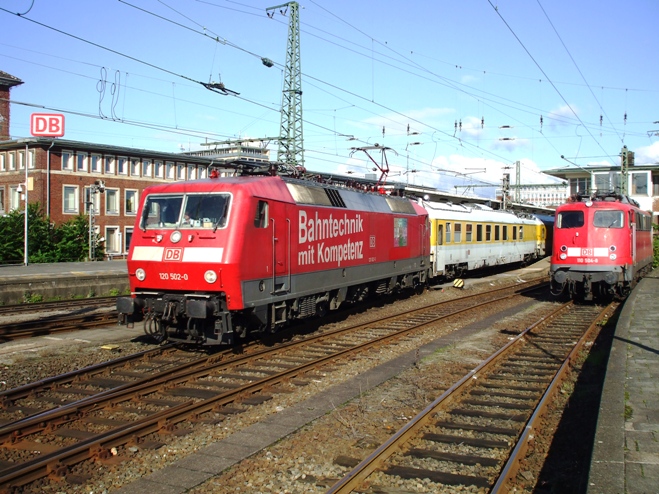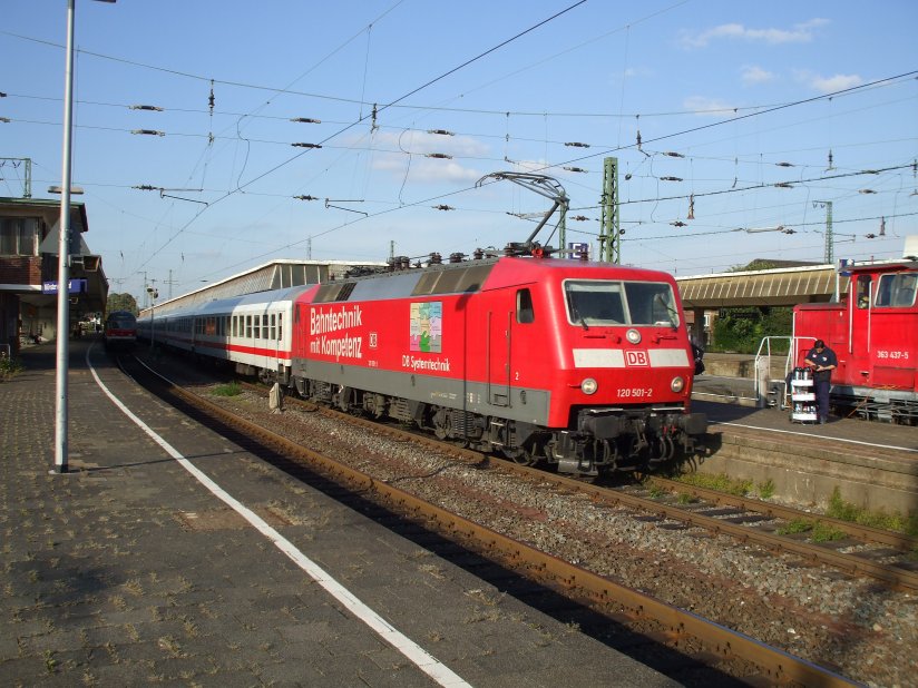 120 501-2 fuhr im Sommer manchmal Planzüger der DB, da die DB Systemtechnik offenbar eine 101 benötigte und dafür diese Lok herausrückte, die prompt vor dem IC 2213 "Rügen" (Binz-Stuttgart) am 21.09.2007 eingesetzt wurde.
