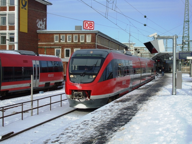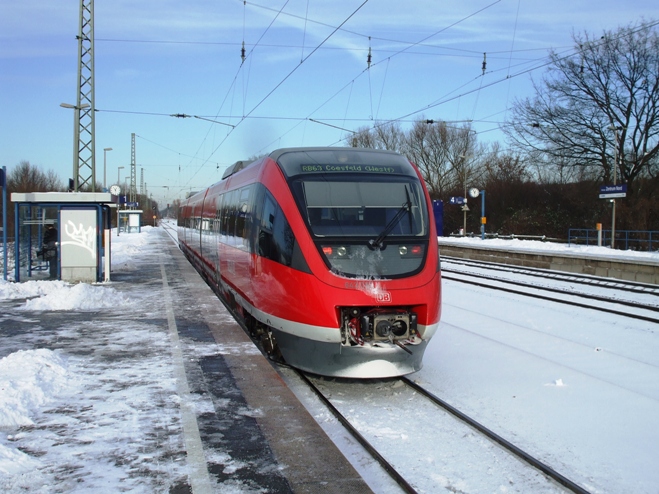 Am 21.12.2009 steht 643 055-7 als RB 39350 (Muenster-Zentrum Nord - Coesfeld) in Münster-Zentrum Nord kurz vor der Abfahrt...