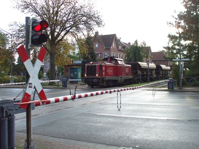 Und hier dann bei der Einfahrt in Münster-Häger. Zum Glück musste der Zug noch eine planmäßige RegionalBahn abwarten, so dass ich noch fix zu einem Bahnübergang nach Kinderhaus juckeln konnte: