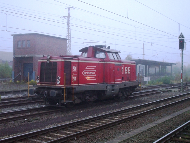 Die Lok Nr. 21 steht im kalten Regenwetter am 13.10.2010 im Bahnhof Rheine.
