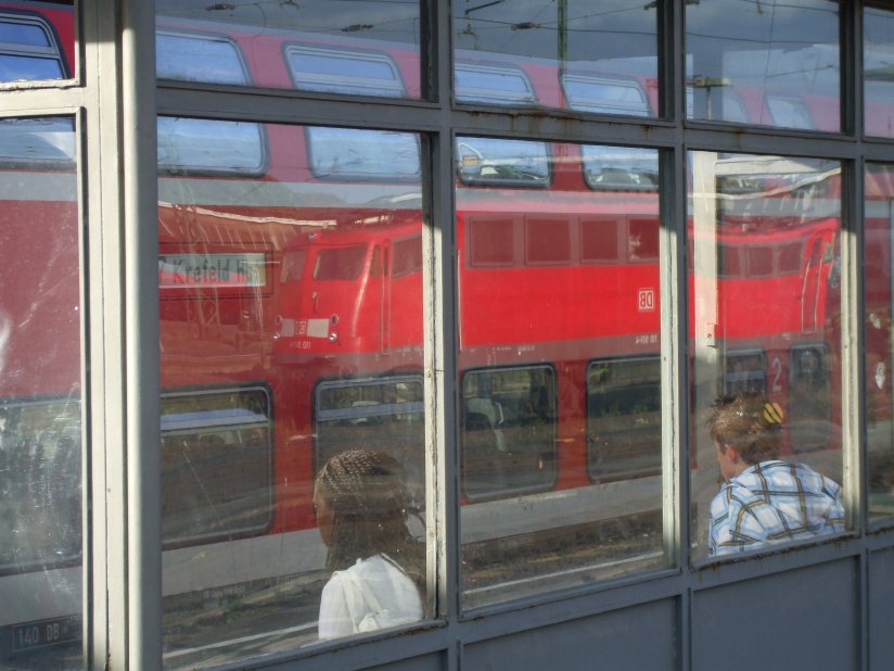 Eine 146 spiegelt sich im IC-Zugfenster.