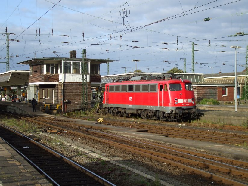 Am 14.10.2009 genießt 110 504-8 ihren Lebensabend im Hauptbahnhof in Münster.