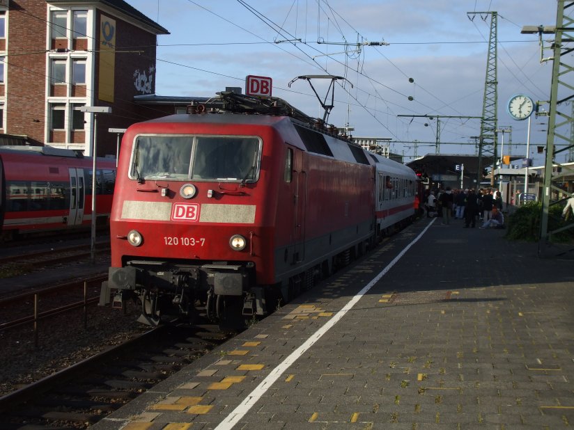 Der sonntags verkehrende D 1921 von Norddeich Mole nach Köln Hbf wurde am 9.9.2007 von der 120 103-7 bespannt. Vergangen sind die Zeiten, als eine 110, 112, 115 oder gar eine 103 diesen Zug zog.