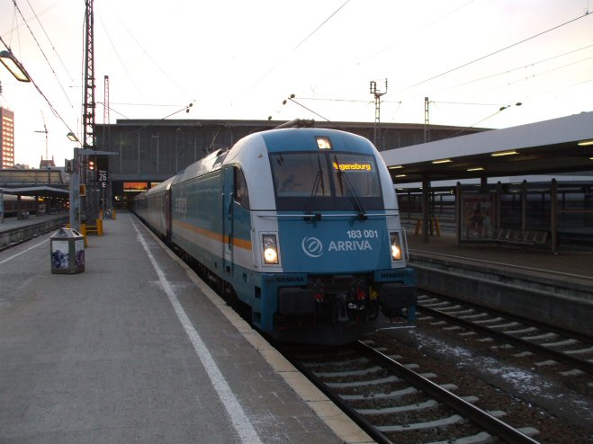 Dieser Weg führte natürlich über München: So sah ich 183 001 vor dem ALX 455 von München Hbf nach Praha hl.n.