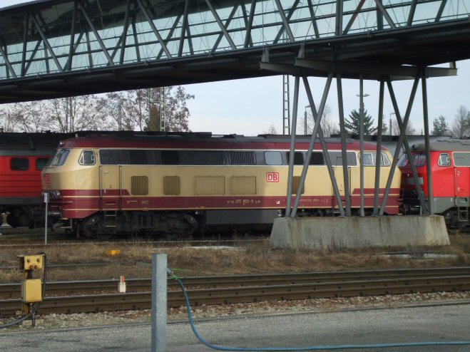 Im Bw Mühldorf steht dann 217 002-5 unter der Brücke...