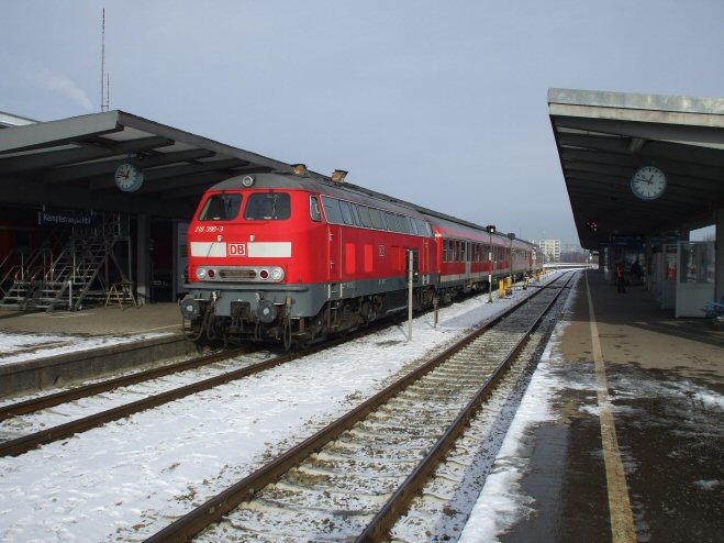 Und dann die 218 390-3 vor einem Leerzug in Kempten (Allg.) Hbf.