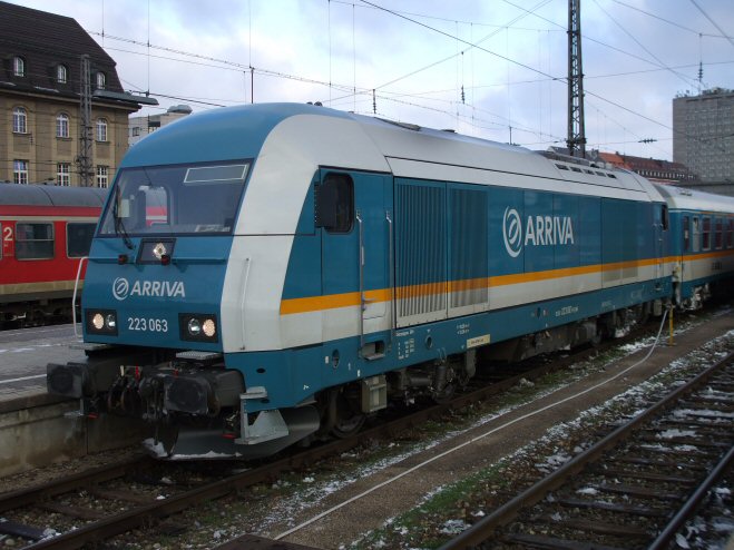Im Münchener Hauptbahnhof steht abfahrbereit 223 063 mit ALX 86214 (München Hbf - Lindau Hbf) zugleich mit ALX 86714 (München Hbf - Oberstdorf).