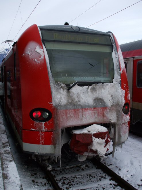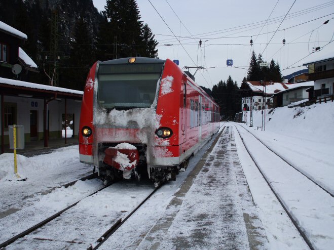 426 031-1 vor der RB 5476 von Garmisch-Partenkirchen - Reutte in Tirol (hier in Garmisch-Partenkirchen) in winterlichem Gewand.