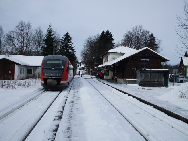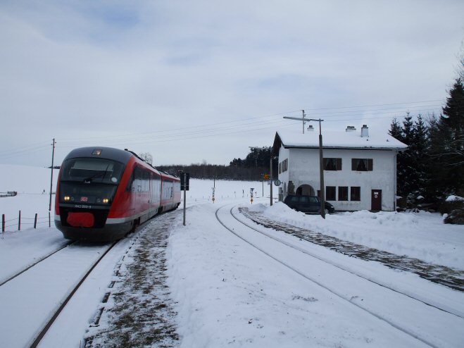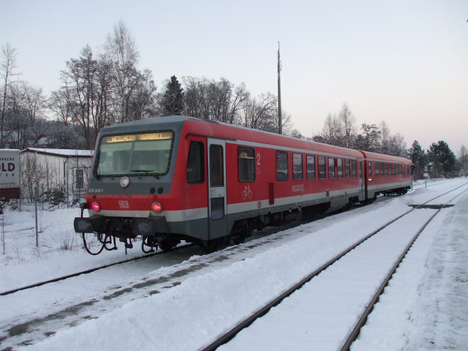 Angekommen im Schnee mit 628 246-1 von Schongau - Weilheim (Oberbay) - hier in Peißenberg.